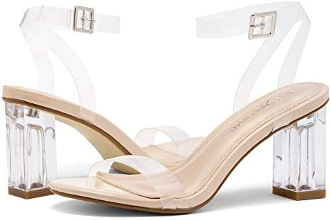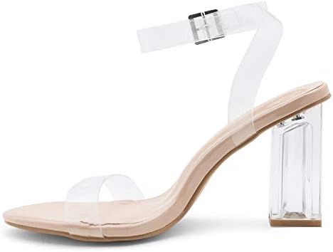 Shoe Land CLLAARY-L Women’s Perspex Heel Ankle Strap Adjustable Buckle Lucite Clear Block Chunky High Heel Open Toe Sandal