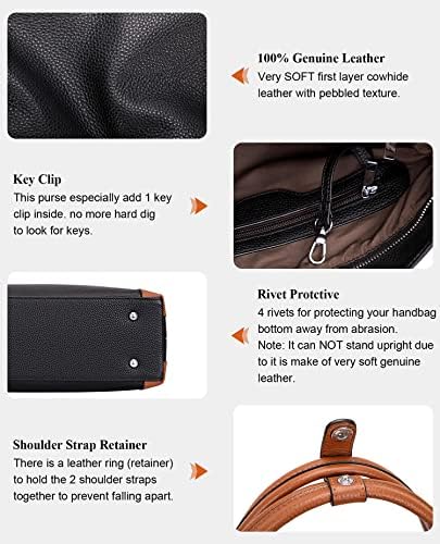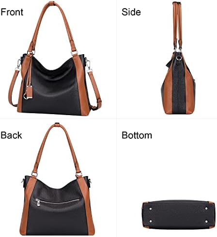 [Material] – This women shoulder bag made of top grain first layer cowhide leather (genuine leather) with pebbled texture; Durable black color polyester lining; High quality gum metal color hardware.