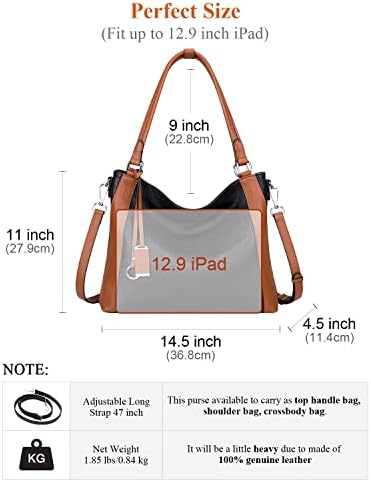 [Size&Weight] – Dimensions Approx :14.5″(H) x 4.5″(W) x 11″(H),Large woemn handbag.Double handles height: 9 inch. Shoulder strap: 50″ length removable crossbody shoulder strap. The weight is about 2.1 pounds/0.95 kg(Heavier than other handbags).