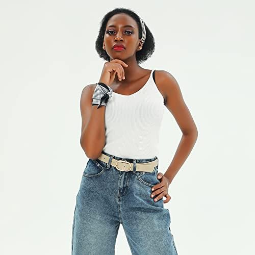 Belt Material: Women’s belt made of faux leather strap. Metal buckle cute waist belt in blue and beige colors to match your different outfits and give you the fashionable look.