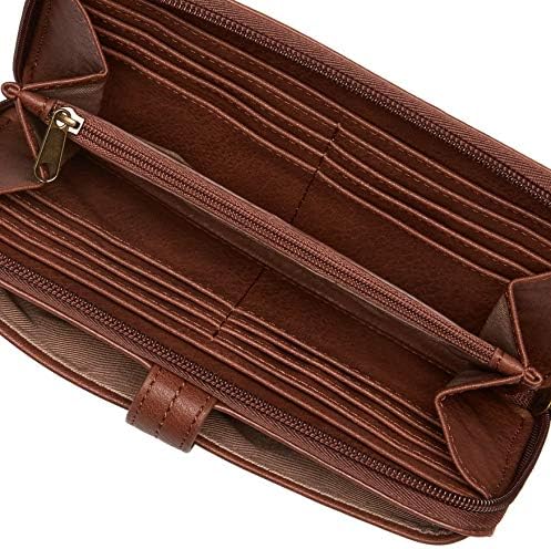 PERFECT FOR EVERYDAY TRAVEL: Features a main zipper closure, front slit pocket that fits most large smartphones with snap closure, and an interior with 8 credit card slots, 2 billfolds & a zipper pocket for coins