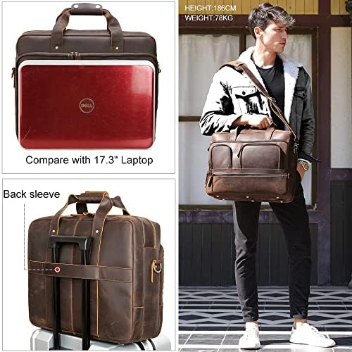 ✔Premium Material – Made of durable full grain cowhide leather, equipped with durable stitching, customized hardware and YKK metal zippers to ensure quality and reliability. The luggage strap on the back of the bag makes it easy to slip into the handle of the suitcase.