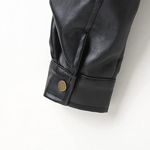 [Design]: Turn-down collar and long sleeve jacket, single-breasted, solid color, simple and stylish.PU button jacket, suitable for fall, winter and spring.adorable and cool style for your lovely daughter, niece.