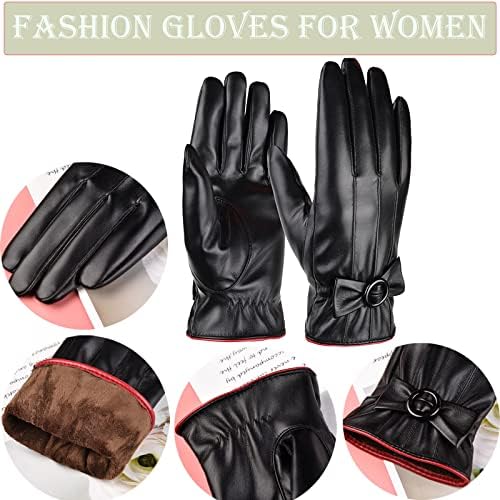 Winter Gloves for Women PU Leather Gloves Warm Driving Touchscreen Texting Gloves with Warm Fleece Lining for Girls