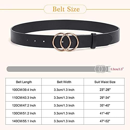 Gold Double O-Ring Buckle—A great looking belt to spice up your outfit! this fashion leather belts for women with a gorgeous overlapping circle buckle, it really makes a difference in the outfit. You will get lots for complements on this lovely belt!