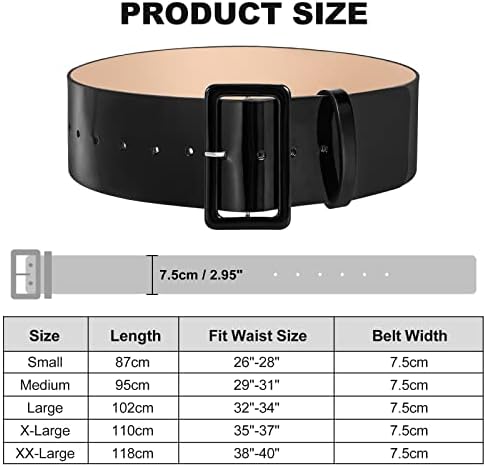 ✦Wide Patent Leather Belt — Made of synthetic leather with patent leather. Vintage chunky buckle belts for women dress in any seasons has gorgeous shiny appearance, will shape your waist and make your outfit look unique and classy.