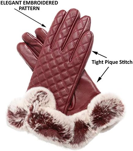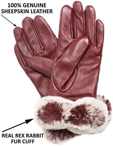 100% PURE CASHMERE LINING with REAL REX RABBIT FUR CUFF: Slip these cashmere lined gloves on and experience an ultra soft, warm and luxurious feel from the cuff to your fingertips. No more uncomfortable, scratchy inferior cashmere blends. These warm winter gloves are lined with 100% Premium Cashmere, unrivaled for their velvety soft hand feel and warmth. Adorned with a Genuine Rex Rabbit Fur Cuff that turns these leather gloves into an elegant accessory your friends and colleagues will envy.