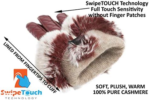 Crafted of luxe sheepskin leather & fully lined with 100% Pure Premium Cashmere, our classic women’s leather gloves with Rex Rabbit fur cuff and full hand SwipeTOUCH Technology – touch screen – offer superior quality at a very sensible price.