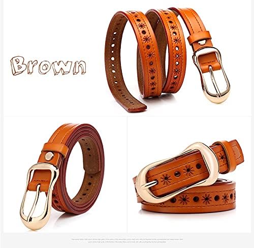 We only have one size for this product :Its total length included buckle is 110cm(43 Inch). Strap width is 2.5cm(0.984 Inch). Perfect for Waist 80-87cm /31-34 Inch This leather belt is made of genuine cowhide,100% Leather .It is soft and durable . Many hollow designs make it more flexible and convenient to wear. just only need to buckle the hollow holes to fit your waist. NOT NEED TO Punch hole. Hollow flower design with gold alloy buckle makes the belt more unique, reflect the taste of fashion and life. Perfect match your dresses, pants or jeans. It is just designed for you , beautiful young woman ,lady. Here we have two noble and elegant colors for you to choose . It’s suitable for your formal or casual wear in any season and all occasions. A Great gift for birthday, anniversary, Girlfriend or Family. And a wonderful Idea for Valentine’s day, Mother’s Day, Thanksgiving, Christmas and New Year Gifts. .