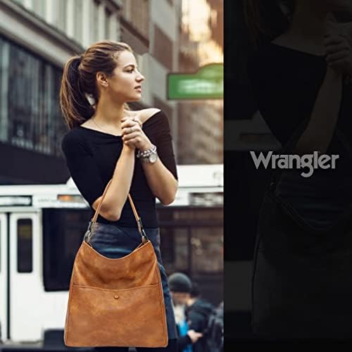 [Superb Material] This woman’s large purse is made of premium vegan leather with hand-stitching details in front. Wrangler branded logo lining inside. Carry it as you like – With the short handle and long strap, this Wrangler hobo bag can be worn on the shoulder or across the body as a chic and sling bag.