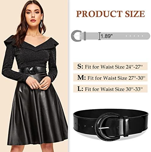 ★【Belt for Dress】Our womens belts for dress is the 3 sizes in four colors; 1.89” wide belt strap; Perfect waist size for 24-33 inches. There has 7 holes for you to adjust the size, it can be adjusted according to the actual situation to achieve a comfortable wearing experience.