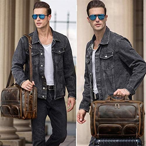 YOGCI Leather Briefcase Large Mens Messenger Bag for Business Travel Fits 17.3” Laptop,Brown-Crazy Horse